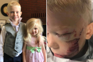 The attack was brutal. The dog lunged, biting his face and head again and again. His small body crumpled under the weight, but he didn’t move away. Instead, he pushed his sister behind him, shielding her until someone could pull the dog away.