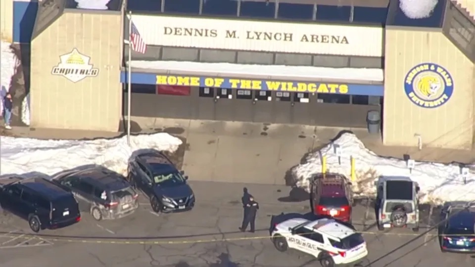 Three people are dead, including the gunman, in a shooting during a high school hockey game in Pawtucket, Rhode Island, on Monday, police said.
