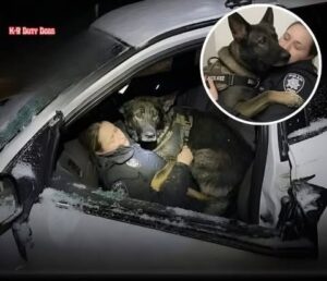 Four Hours of Loyalty For four long hours, in the dark and the brutal cold, Koda pressed his body tightly against Sarah’s chest and torso. His thick fur became insulation. His steady heartbeat became rhythm. His warmth became life. He shivered. He endured. He stayed. Snow gathered on the edges of the wreck. The wind howled through the trees. But inside that crushed cruiser, one loyal dog refused to move an inch away from his officer.