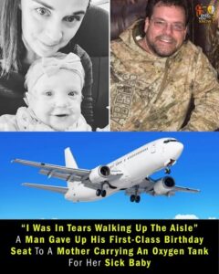 Seated in first class was a man named Jason Kunselman from Mechanicsburg, Pennsylvania. He watched as Kelsey carefully maneuvered down the aisle, balancing her daughter and the medical equipment. He saw what many others may have missed — not inconvenience, but weight. Physical weight. Emotional weight.