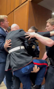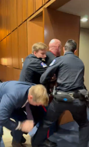 The dramatic confrontation has provoked intense national emotion: during a Senate Armed Services subcommittee hearing examining U.S. military readiness amid escalating involvement in the conflict with Iran, Montana Senator Tim Sheehy, a decorated former Navy SEAL, rose from his seat to assist three Capitol Police officers in physically removing a disruptive protester who had interrupted proceedings with a tearful anti-war declaration. The protester, identified as Brian McGinnis, a former Marine Corps member and Green Party Senate candidate from North Carolina, was forcibly ejected after clinging to a doorway and shouting that “America does not want to send its sons and daughters to war for Israel.” The incident left McGinnis injured—reports indicate a broken arm—and three officers requiring medical attention, resulting in his arrest on felony charges of assaulting police and resisting arrest.