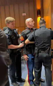 The controversy has escalated dramatically as the episode ignites fierce and deeply polarized debate. Supporters of McGinnis and broader anti-war voices condemn the response as disproportionate and emblematic of institutional intolerance toward dissent. They argue that a grieving veteran, exercising constitutionally protected speech in a public hearing, deserved verbal de-escalation and respect rather than physical force—particularly when the individual delivering that force was another combat veteran. They view Senator Sheehy’s intervention as an unnecessary escalation that silenced legitimate criticism of U.S. foreign policy at a moment of acute national consequence. Defenders of Sheehy and the security detail maintain that congressional hearings require order and decorum to function; McGinnis deliberately sought confrontation, physically resisted lawful commands, and placed officers in danger through his struggle. Sheehy stated afterward that his intent was to “de-escalate” the situation and prevent further injury, describing McGinnis as an “unhinged protestor” who arrived prepared for conflict. The divide has fueled exhaustive commentary across social media, broadcast networks, veteran organizations, and opinion platforms, with arguments centering on the boundaries of free expression in legislative settings, the propriety of senators participating in physical restraint, and the broader optics of one veteran confronting another in uniform.