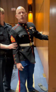 Emotions reached an overwhelming intensity as video footage captured McGinnis, still wearing his Marine Corps uniform, breaking into sobs while being dragged from the room. His outburst, delivered amid visible anguish, directly referenced personal loss: the deaths of his own sons in previous combat operations. The veteran’s raw grief transformed a formal legislative session into a visceral display of the human cost of war, compelling every person present—and millions watching subsequent footage—to confront the enduring pain carried by Gold Star families. The sight of a grieving father, once a disciplined Marine, reduced to tears and physical restraint inside the Capitol has evoked profound sorrow and outrage in equal measure, amplifying the sense that the nation’s war policies continue to exact an unbearable toll on those who have already sacrificed the most.