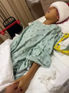 Blood ran down his cheek, but he held her hand tightly as they ran for help. The wounds were deep — his face torn, his scalp punctured. Doctors counted 90 stitches as they worked to close the injuries. The surgeons said he was lucky to be alive.