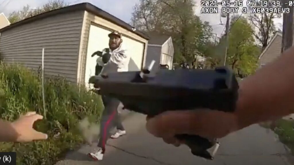 “They shootin’ me,” he yells, to which an officer responded, “You shot at us.”